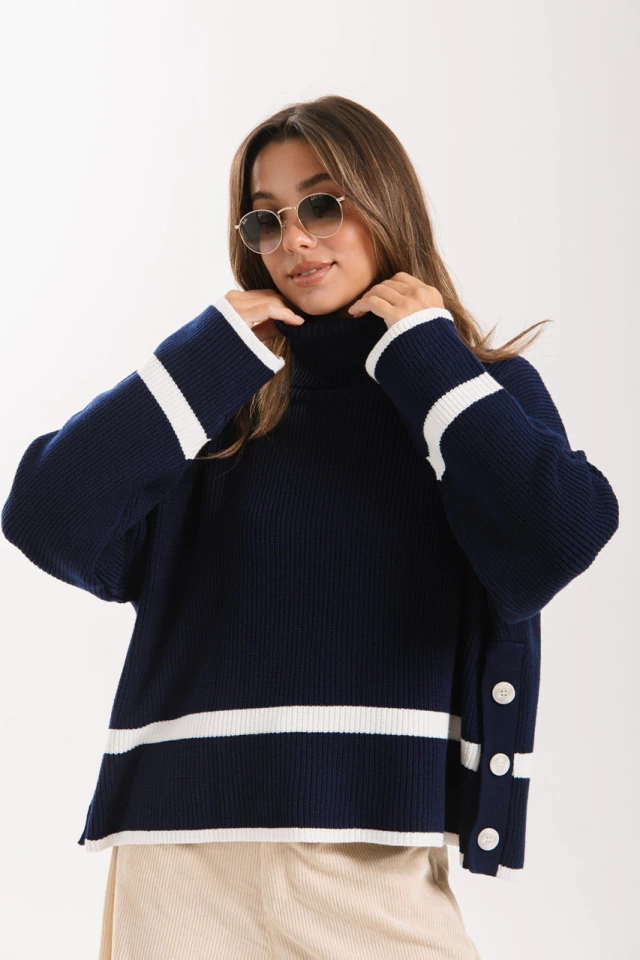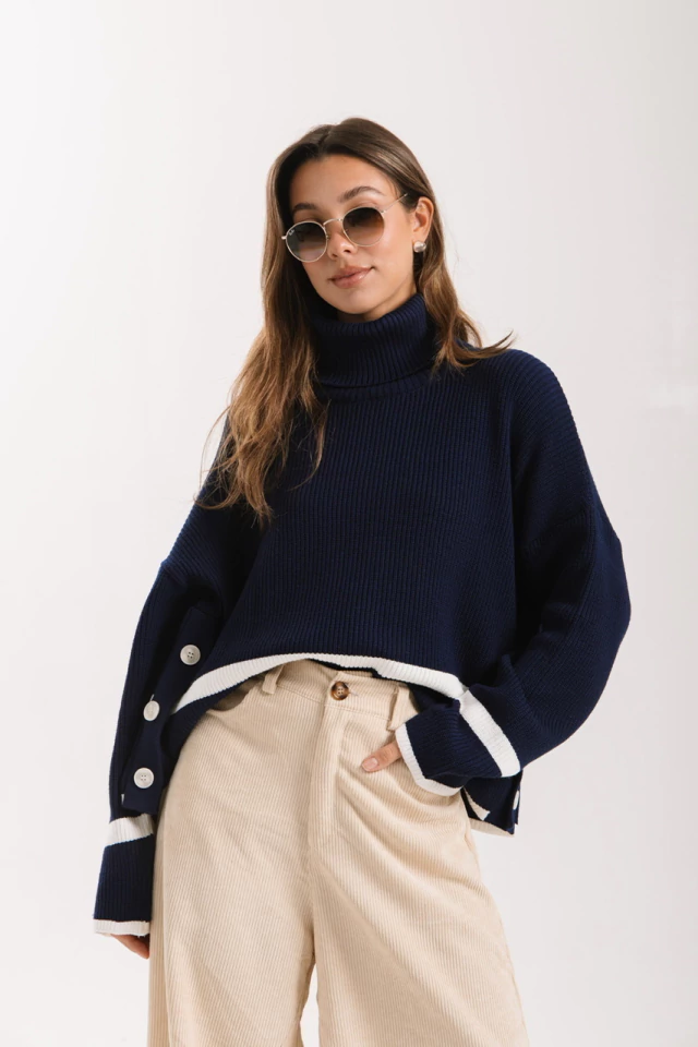 Descubre el polerón moderno y versátil con botones laterales.